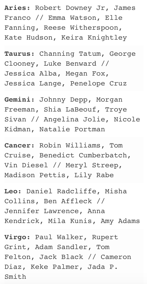 Celebrity Astrology Signs Popsugar Celebrity