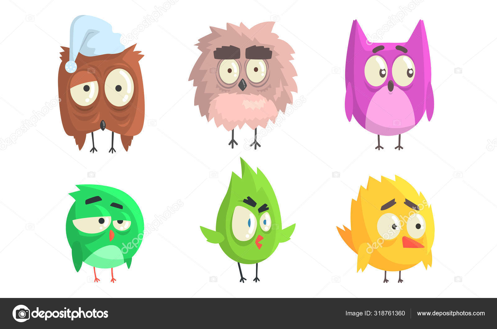 Cartoon Birds With Eyebrows Vector Illustration On White