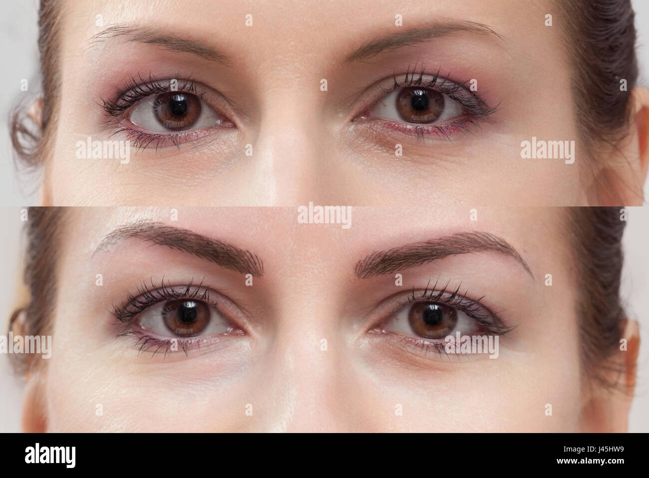 Japanese Technique Of Drawing Eyebrows Before And After Stock