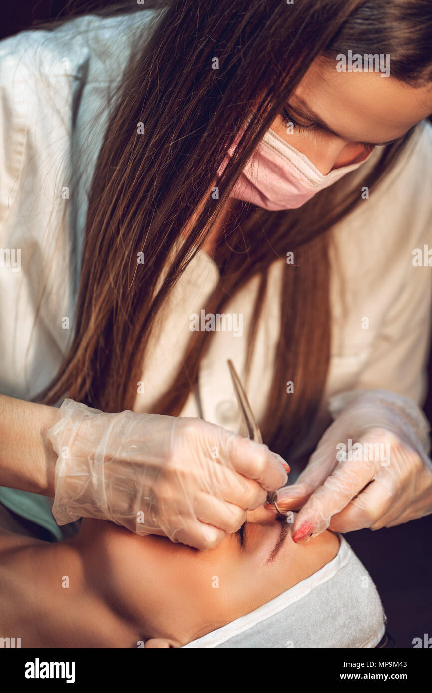 Beautician Applying Japanese Method Of Drawing On Eyebrows To