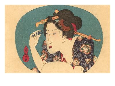 Japanese Woodblock Lady Plucking Eyebrows Art Print By Art Com