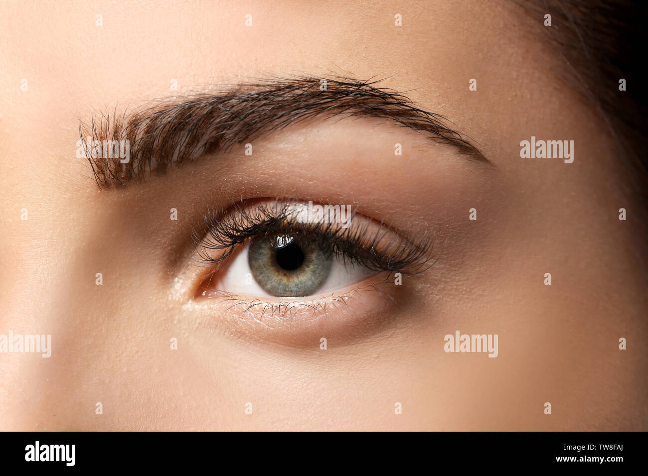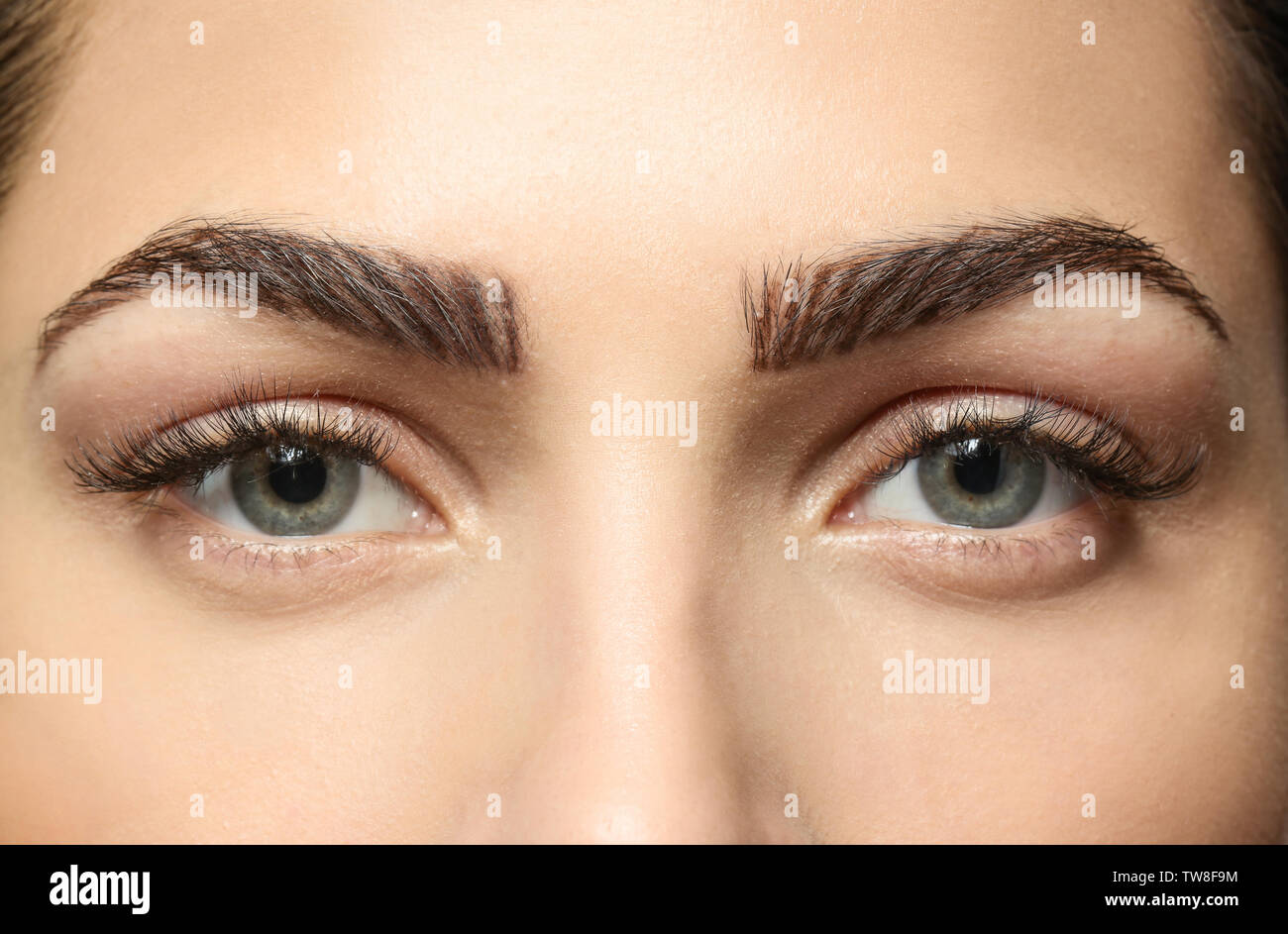 Young Woman With Beautiful Eyebrows Closeup Stock Photo