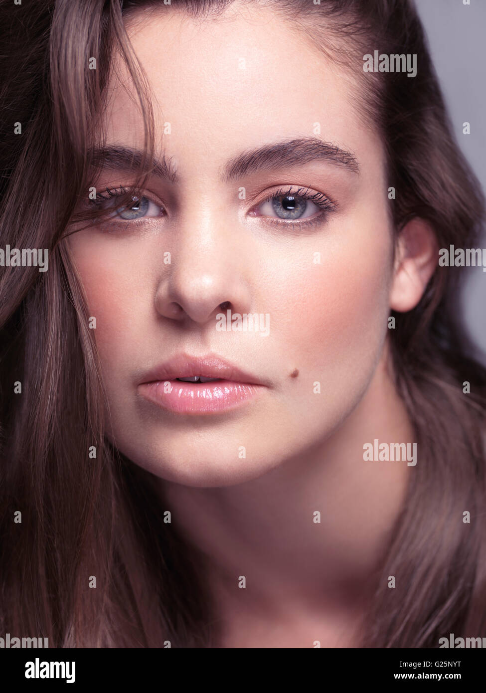 Woman With Long Hair And Bushy Eyebrows Stock Photo 104618524 Alamy