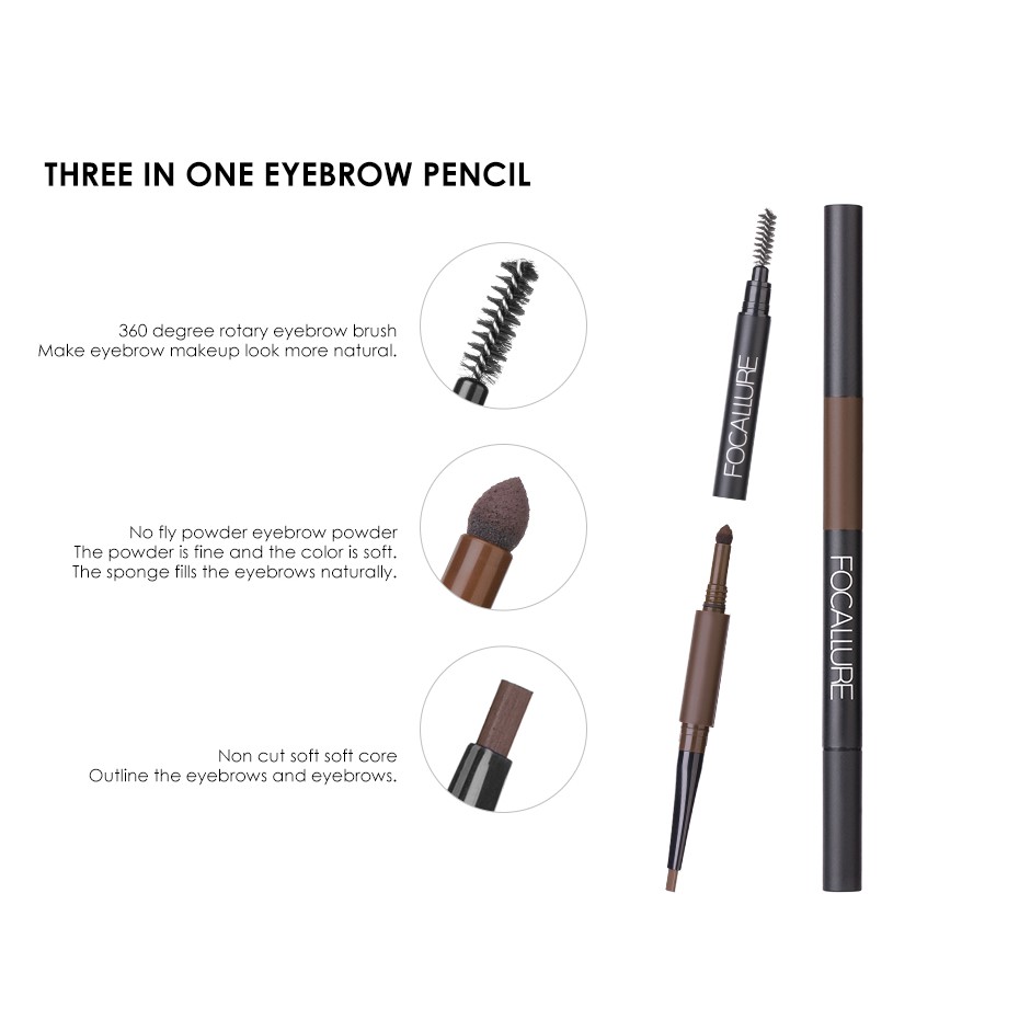 Cod Focallure 3 In 1 Eyebrow Pensil Eyebrow Brush Wet Powder Anti