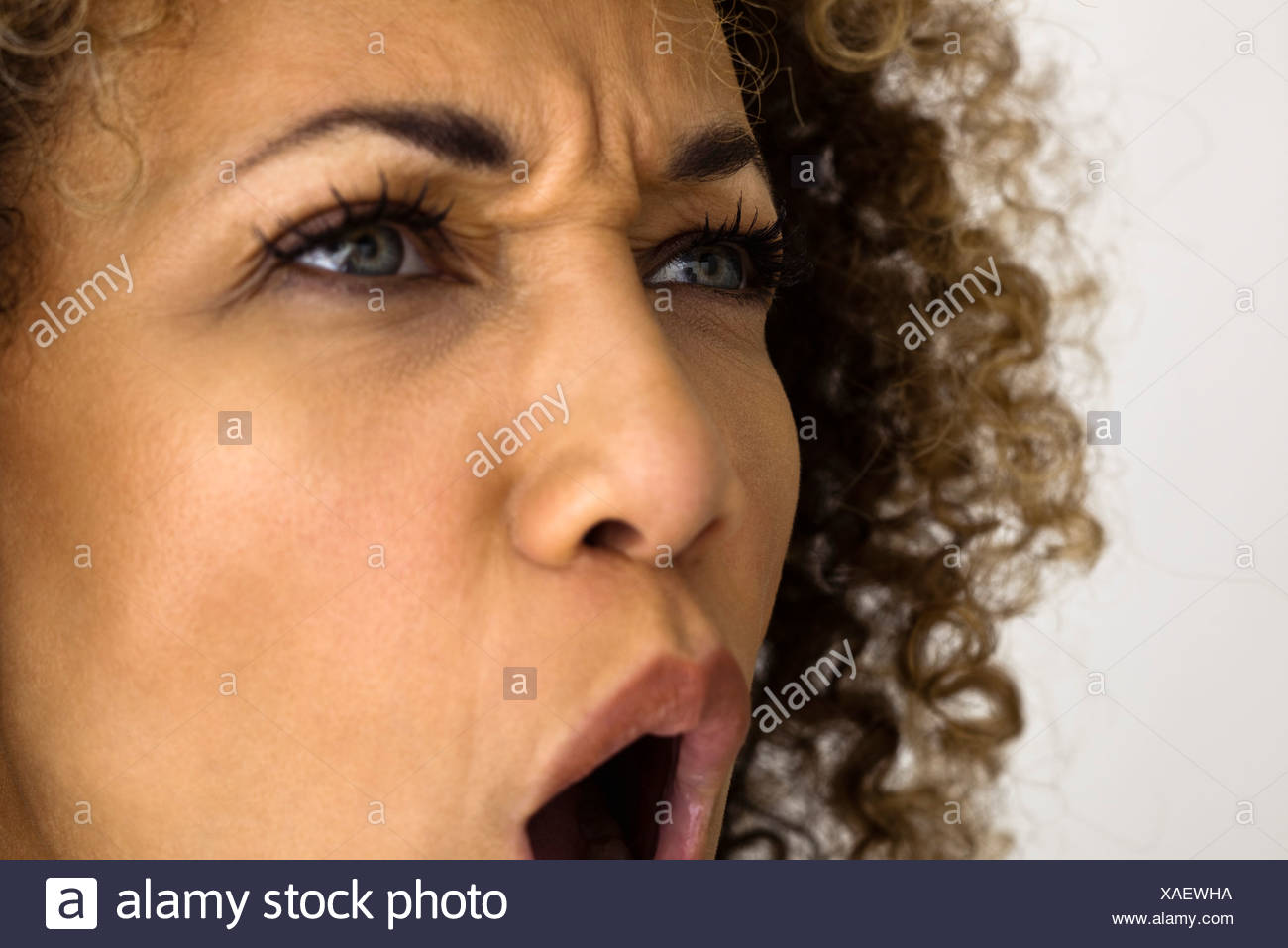 Woman Furrowing Brow Looking Away Portrait Stock Photo Dissolve