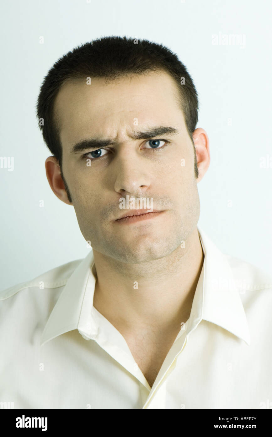 Man Furrowing Brow Portrait Stock Photo 12871358 Alamy