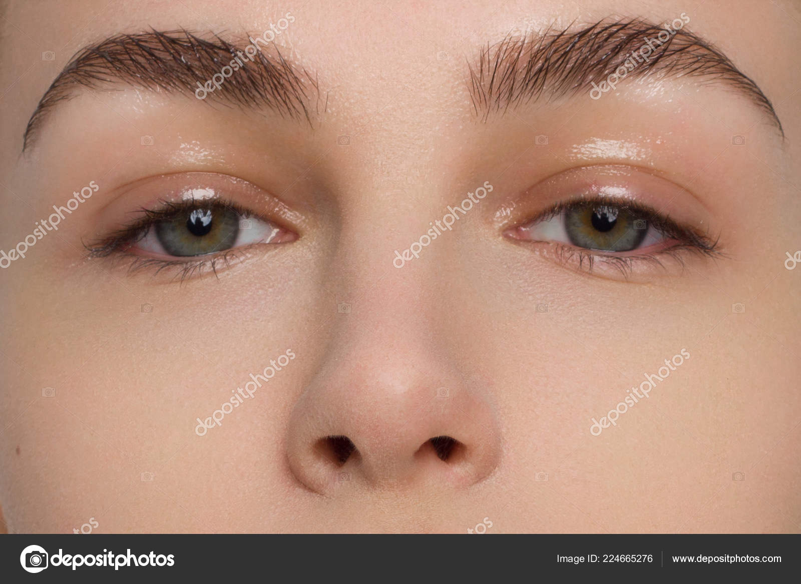 Close Female Eyes Trendy Evening Make Thick Even Eyebrows Long