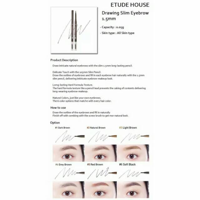 100 Original Etude House Drawing Eyebrow Slim Eye Brow Pencil