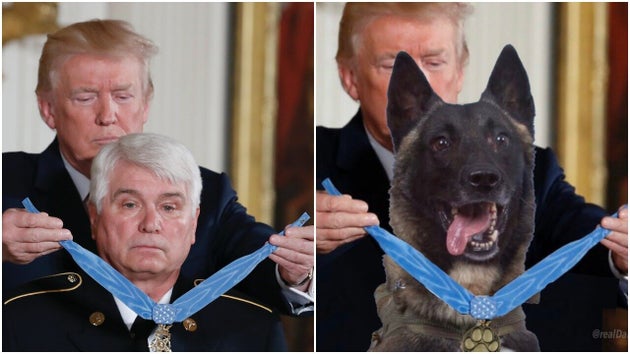 Trump Posts Faked Photo Of Him Giving Medal To Hero Dog Huffpost