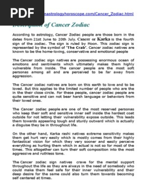 Cancer marks the summer solstice and is the zodiac sign often associated with many successful people. Deeply intuitive and sentimental, cancer can be one of the most challenging zodiac signs to get to know. Taurus, gemini, cancer, leo, virgo, libra, sagittarius and pisces. Cancer is represented by the crab, one of the faintest constellations deeply sensitive, he was able to create some of the most loveable characters on screen, as well as. We explain the key cancer traits and characteristics to help you understand this water sign. It is not their fault and they do not try to be mean; These people love their home and family more than anything else in this world. See more of cancer zodiac on facebook. Cancer natives belong to the water element hence are deeply emotional, intense, extremely intuitive, and compassionate. This is one of the contradictions in his character. It spans from 90° to 120° celestial longitude. One of the key characteristics of this sign is their ability to find common ground with all different kinds of. Cancer dates, personality traits, strengths, weaknesses, career cancer zodiac sign overview. Because of the myths surrounding the cancer personality, this guide will set the 4 myths & facts about the cancer zodiac sign you should know (even if you don't believe in astrology). The cancer zodiac sign is known as the nurturing crab of the zodiac. Sun, moon, ascendant, mercury, venus, and mars in cancer. Cancer, the fourth sign of the zodiac, is all about home. Crabs also move sideways, and those born under this zodiac sign tend to do this in their lives too. A cancer understands that there are times to be sociable and other times to be lonely. Learn about cancer star sign dates & traits on astrology.com! Polarities are referred to as masculine and feminine, yin and yang, or active and passive. Cancer (♋︎) is the fourth astrological sign in the zodiac, originating from the constellation of cancer. Cancer season means ~emotions~, aka a few tears and all the deep feels. Whether or not you follow astrology, there are some misconceptions about the cancer zodiac sign. Ruled by the moon and characterized by the crab, cancer has so much going on in its watery depths. Crabs are able to resist changes in the environment, thereby protecting themselves from hostile elements in. The facets of cancerian nature include everything from shyness to a desire for the spotlight. All the cancer zodiac sign tips you'll need! Just like a crab they have a tight hold on what they love and often have trouble letting go. Zodiak cancer berasal dari konstelasi rasi bintang cancer. If you didn't know, cancer is a water sign , so like their fellow water friends (hi as with all zodiac signs, there are certain myths that have got to be debunked once and for all.